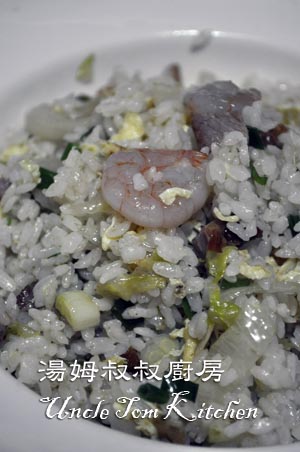 好幾天沒噗菜囉!來一道炒飯吧!好吃的炒飯一定要米飯一定要粒粒分明,要用隔夜飯入冷凍庫取出退冰!好吃的炒飯一定要大火快炒,好吃的炒飯一定要有加點美生菜、洋蔥,比較爽口,好吃的炒飯要加一顆蛋,好吃的炒飯要有臘肉,加點洋蔥!要有鮮蝦!哈哈!這就是廣州炒飯啦!