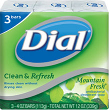 - Dial Clean & Refresh Antibacterial Deodorant Bar Soap Mountain Fresh rinses clean without drying skin.