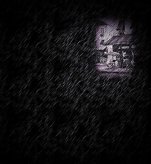 西窗外、雨飛風斜濕階。走影匆匆未歇。濺濺水花疏簾綴。煙繞滿屏涼葉。休聽歌箧。殘月不照夜雪。
