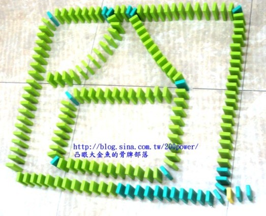 (所以,右下角的三片骨排是沒意義的,雖然這位學員可能想接連下一個圖案,但已經注定失敗了,有時候骨牌行進的邏輯知識也是很重要的,改天有機會再和大家分享這個部分。)