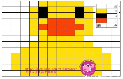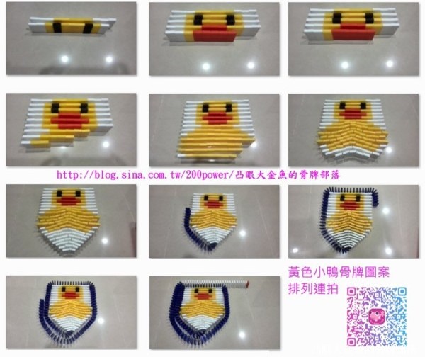 前一篇版主嘗試了黃色小鴨的側面骨牌圖案,收到了一些網友不錯的反應,本篇繼續分享黃色小鴨的骨牌圖案,但分享的是正面圖案,相信有親自去到現場看過黃色小鴨鴨的人,總是會有這樣的經驗,從側面、正面、後面等各種角度合照吧!所以,黃色小鴨的骨牌圖案也不能免俗的,產生了正面圖案。