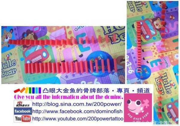 (2)骨牌正常放(直放、距離約二分之一骨牌長)。