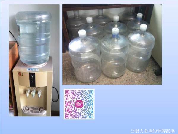 發現了嗎?就是飲水機上面的水桶。只要累積個幾天,就能夠有數量足夠的空桶子可以用了。
