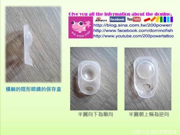 隱形眼鏡的保存盒因為上下兩面是不同的,因此這次的排列也分成兩種方式,在這我們以保存盒倒下時半圓形的方向來分,半圓向下為順向,而半圓朝上稱為逆向。