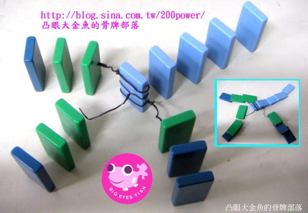 下面這張圖是我測試的過程中,覺得還算可以的一張,雖然如果拆掉束線,骨牌好像也還是可以行進,但這也是一種變化,增加秀的豐富度。
