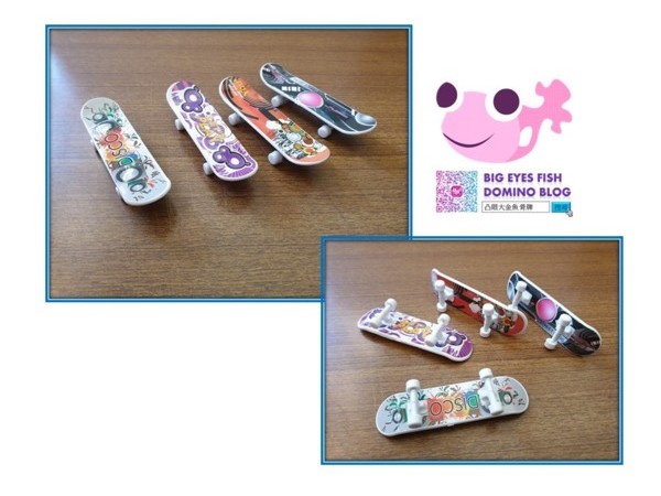 玩具滑板,就是超迷你的滑板,這東西平常幾乎很少看到,偏偏就讓我在玩文具店瞧見了。看到的時候,我第一個反應就是這如果和骨牌搭配不知道會怎樣,於是我就瞬間敗金買下。