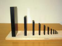 經過計算後的骨牌尺寸及重量,規則排列,其重量隨指數關係增加,