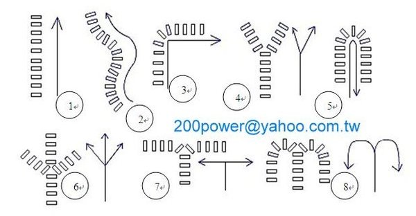 根據上面的分析,可以擷取幾個基本的技巧給孩子作測試:直線排列、弧線排列、90度角轉彎排列、迴轉排列、二分叉排列、三分叉排列,藉此觀察孩子能夠完成的程度,由孩子的完成程度我們可以以此作為參考,孩子的手巧度以及認知及反應的情況。