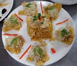 切塊擺盤 放上苜蓿芽裝飾 最後加少許玫瑰鹽