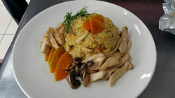 補充高湯 並且加入配料 繼續把米悶熟 煮的過程除了悶著外 還要注