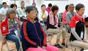 5月3日於士林運動中心教授放鬆禪法,由許諺賓老師主講,蘇怡玫老師任助教,許多銀髮長者前來認真學習。諺賓老師除了講解放鬆禪法的原理及要領,還帶領老人家練習腳趾頭走路。