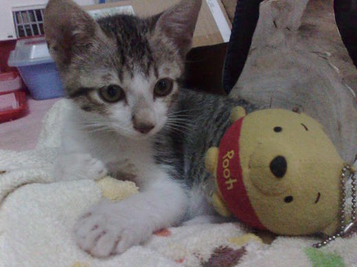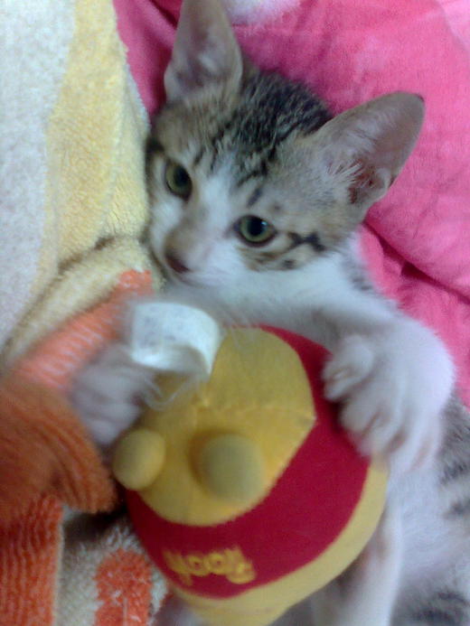老弟好幾年前送我的維尼熊昨日淪為妙妙的玩物,