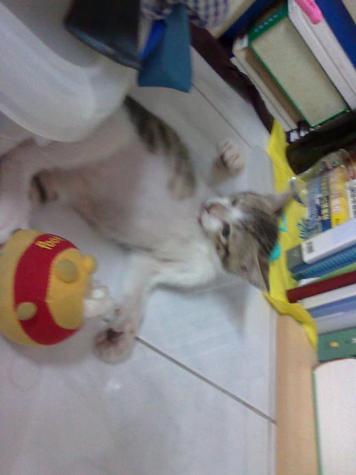 今天天冷沒去圖書館,我偶爾也會跟牠互踢維尼來個眾樂樂一番!