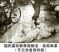 台灣的命運就像又被一個新的殖民政府侵入,長期陷入戰爭狀態的中國軍隊在基隆港登陸台灣,當時的台灣人熱烈期待並且迎接來自「祖國」的軍隊,當時的台灣在很多人眼中是日本之後的進步國家,因為台灣在日治時期除參政遭受到限制,但其基礎建設與人民素養都是東亞首屈一指的進步地區,但接收的軍隊之軍記散漫與裝備破舊,以讓台灣人失望,抵台後對台人進行的手段與政策宛如搶匪,以致之後一九二七年在台灣發生二二八事件這不過是個導火線,因為這中間充滿對台灣人的壓榨,造成台灣全國各地的不滿引爆,當時台灣人更認為這樣的政府宛如「新總督」,接踵而來的「清鄉運動」更是造成上萬無辜的台灣菁英喪命,其死相都相當悽慘,多數都是遭受凌虐後槍殺,多數生前生殖器被割下塞入嘴中。