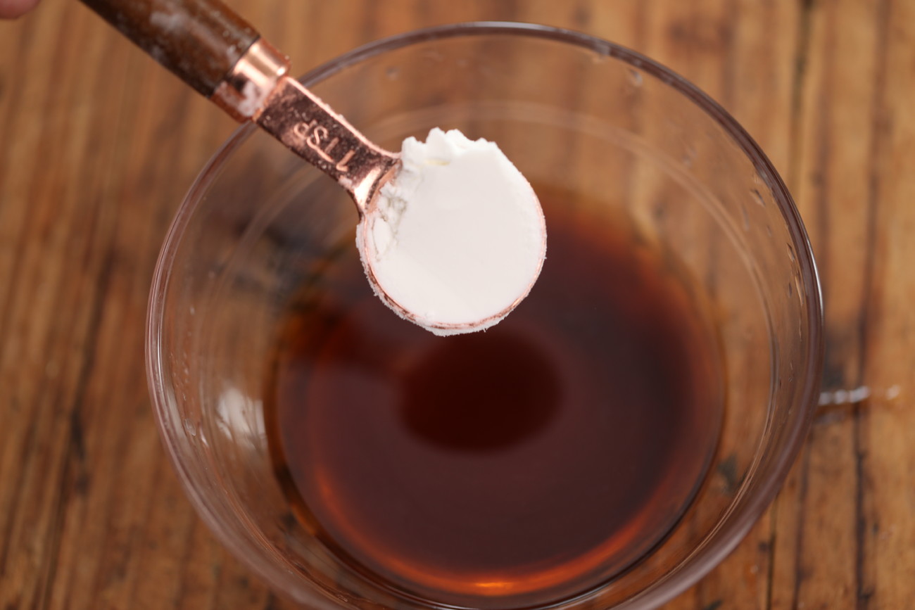 1、按照“54321”的順序,依次加入5勺清水,4勺番茄醬,3勺白糖,2勺醋,1勺澱粉,順時針攪拌均勻,糖醋汁就製作完成了。