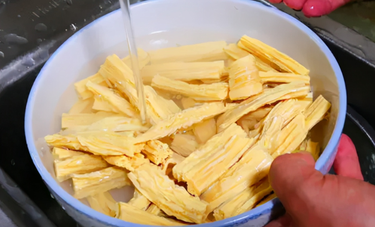 技巧:要想腐竹泡得快,就得加溫水,溫水的水分子運動快,能更快地進入到腐竹內部,讓幹腐竹泡發。用冷水太慢,用熱水或開水不僅口感差,營養也流失了。
