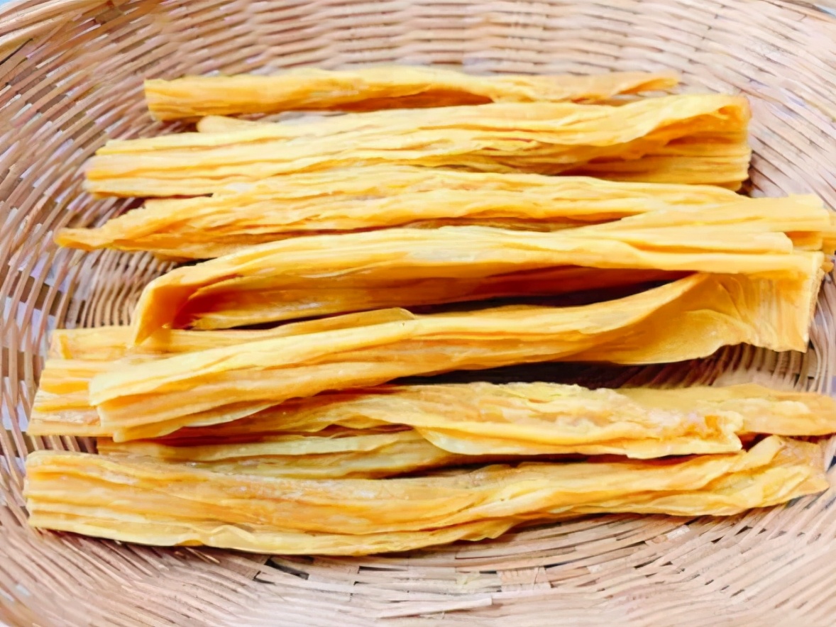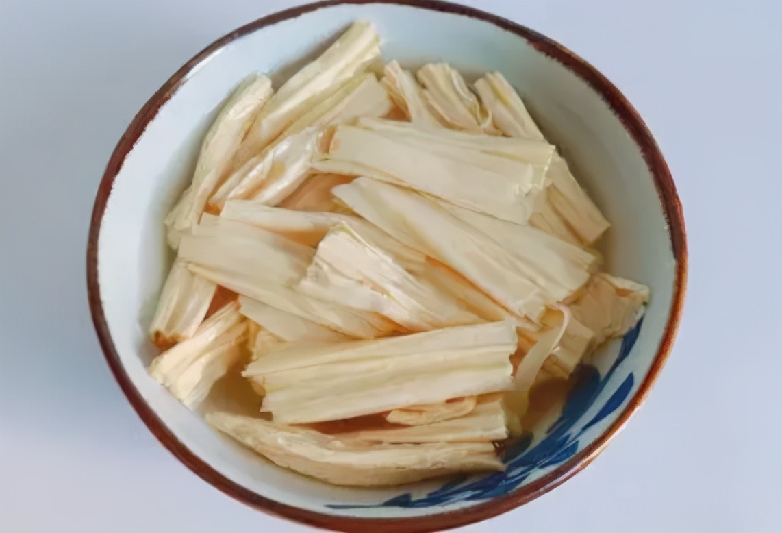 它的口感軟嫩筋道,吃法也多,可以熱炒、涼拌、燉湯等,還能涮火鍋,都非常好吃。平時能買到的腐竹都是乾貨,食用前需要提前泡發。