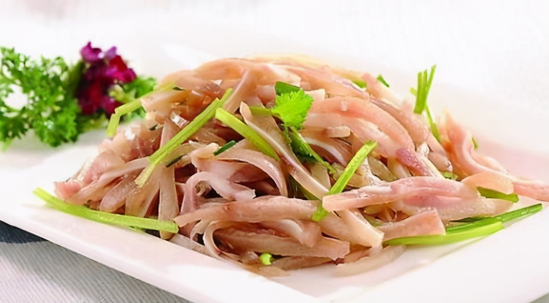 2、里脊肉一塊,先切成片,再切成絲,把肉絲放入盤中,加入食鹽,胡椒粉,料酒,滴幾滴老抽調底色,快速地攪拌均勻。