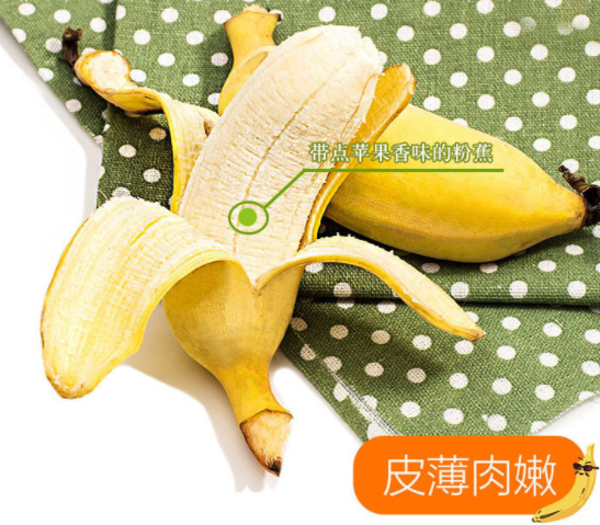 在年豐大當家搜索香蕉時會看到有一種體型短小精悍的小香蕉,這種香蕉自帶蘋果香氣,通常也稱之為蘋果蕉。蘋果蕉與普通香蕉在營養上有過之而無不及,而且口感上蘋果蕉比普通香蕉更細滑、更飽滿、更香甜,沒有普通香蕉的那種干澀的感覺。香蕉的營養及其豐富,含有每日人體所需膳食纖維10%以上,除了各種維生素還有豐富的鉀、錳、鎂等礦物質。