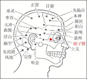 這些穴位由前往後依序為曲鬢穴(GB7)、率谷穴(GB8)、天沖穴(GB9)、浮白穴(GB10)和頭竅陰穴(GB11)。