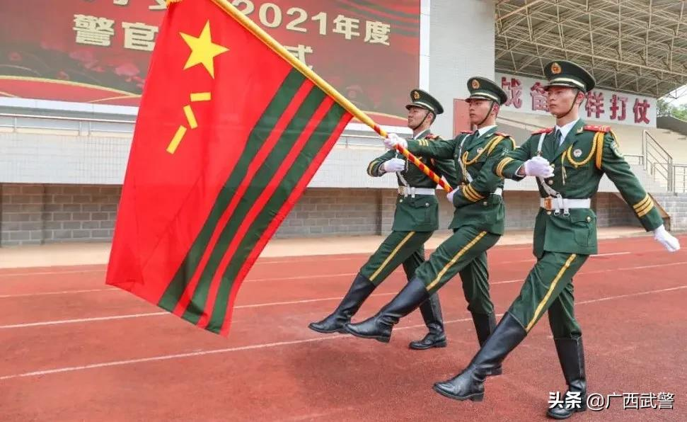 三名擎旗手高舉武警旗