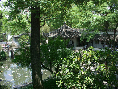 卻更見風致了。月光如流水一般,靜靜地瀉在這一片葉子和花上,薄薄的青霧浮起在荷塘裡,葉子和花彷彿在牛乳中洗過一樣;又像籠著輕紗的夢。雖然是滿月,天上卻有一層淡淡的雲,所以不能朗照;但我以為這恰是到了好處--甜眠固不可少,小睡也別有風味的。月光是隔了樹照過來的,高處叢生的灌木,落下參差的班駁的黑影,峭楞楞如鬼一般;彎彎的楊柳稀疏的倩影,卻又像是畫在荷葉上。塘中的月色並不均勻,但光與影有著和諧的旋律,如梵婀玲上奏著的名曲。