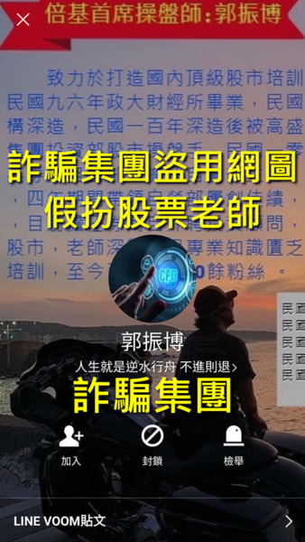 網友呂女士在臉書上看到郭振博的股票投資理財廣告,由於呂女士自己也想學習投資方面的資訊就點了進去,聯絡到假冒老師郭振博後,按照他們程式時間轉點進行投資賺錢,最後呂女士被騙314萬。 現在最常見也是詐騙集...