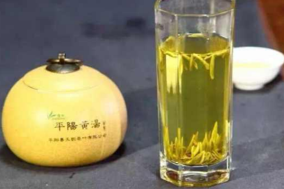 平陽黃湯是浙江省溫州市平陽縣特產,屬於六大茶系中的黃茶類,在清朝乾隆期間就被列為皇家貢品。它以平陽特早茶或者當地群體種等茶樹的優質鮮葉為原料,再經殺青、揉捻、悶黃、乾燥等多道工序製作而成,其最大的特色便是有“三黃”,即乾茶金黃、茶湯杏黃、葉底嫩黃!
