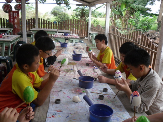 認真彩繪鵝蛋ㄉ男生們