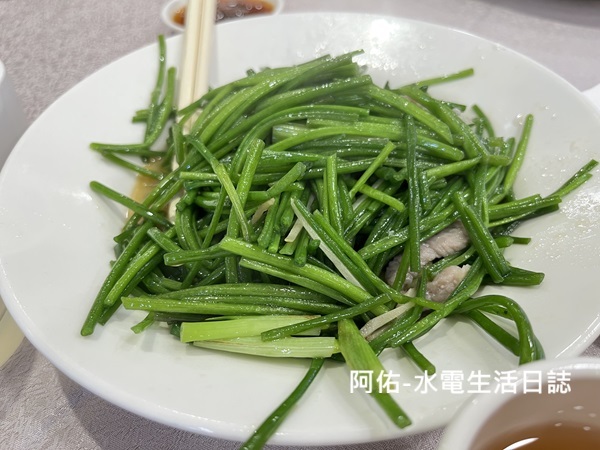 【炒青菜- 水蓮】加了點肉絲一起炒,青翠好吃~