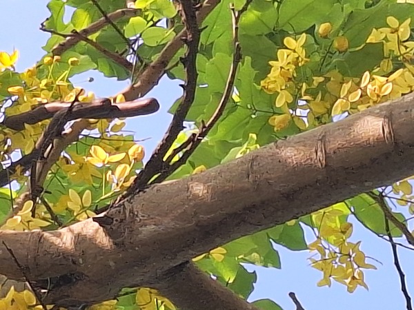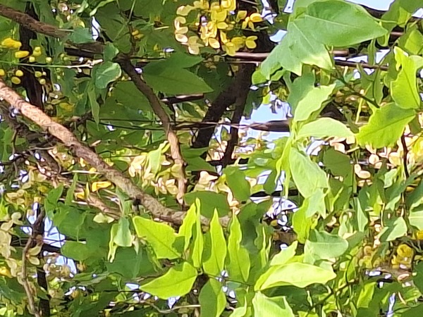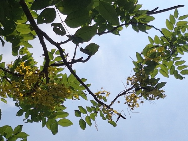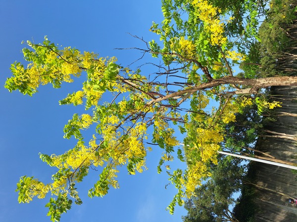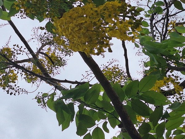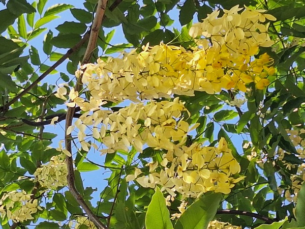 阿勃勒花猶如高掛樹上的黄色串串風铃,美不勝收,而且樂群一路整條行道樹全部栽植阿
