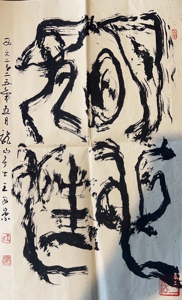 弘一大師將心的兩點,ㄧ點點在心內,ㄧ點點在心外,似乎在暗示著修行人心中只有本心,不要有意識心。
