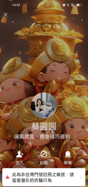 詐騙集團透過網路廣告平臺大量投放投資詐騙廣告,讓國內民眾混淆誤認,更讓政商、財經各界遭冒名之人士不堪其擾,多次公開聲明並未開設任何LINE投資群組,提醒民眾切勿上當受騙。常見的詐騙廣告內文關鍵字如「AI妖股」、「最強黑馬股」、「飆股特別通知」、「免費贈書或公益送書」、「限時免費領取千萬不要錯過」以及宣稱「公開唯一官方LINE帳號」等,請民眾提高警覺,切勿輕信。