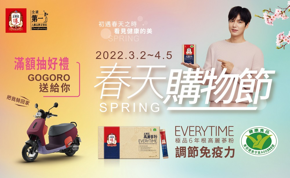 圖: 正官庄入春推「春天購物節」,春季養生享優惠,滿額抽GOGORO等大獎。
