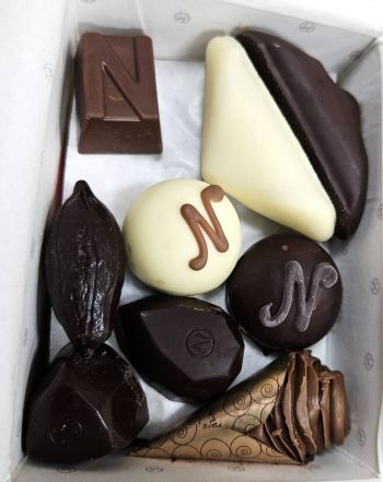 近年來,住家附近的百貨地下層也進駐了一家以「繽紛時尚、寵愛分享」為圭臬的巧克力精品店。自此,我便成了那裡的常客,時不時去朝聖那些精美得足以讓人讚嘆歌頌的異國珍品,自然口袋裡的鈔票也隨之翻騰如煙。