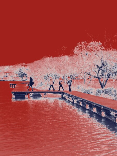 我們這群「老小孩」繞池健走,在殘荷枯影間穿行。為了模仿網紅在狗尾草叢中拍出唯美意境,我們不斷變換角度,最終卻只能對著成果大笑…原來,網紅的世界多是鏡花水月的照騙,而我們笨拙的顯影才是最真實的風景。