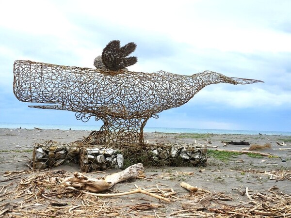 多數作品面向大海,帶著一種捍衛自然的孤勇,或是對傳統人文價值的深沉包容。部分作品取材自漂流木,在粗獷的肌理中,隱喻著海廢與環境汙染的省思。那些在社群媒體上喧囂的網紅打卡點,其背後實則是美學的顯影,亦是土地無聲的警醒。