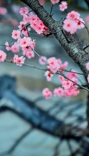 山櫻立在雨中,綻放疏離而零亂的紅豔