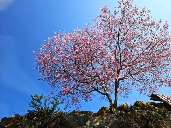 在濃密的綠色視野中,那一簇簇小巧別緻的花朵,以不可遏制的柔艷氣勢攫住追櫻人的目光。如此熱烈,滿山漫爛不藏的,為春天書寫下最後一場「一期一會」的生命禮讚。
