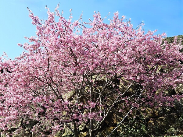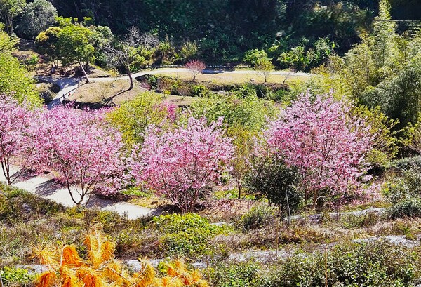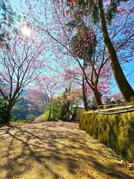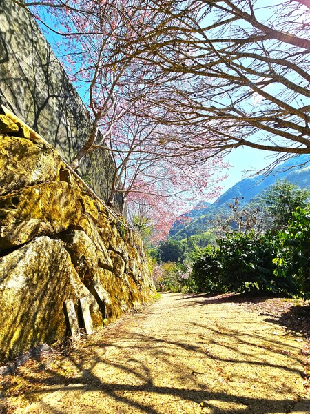 草嶺石壁的兩萬株櫻花,二十多個品種,沿著美人古環線步道一一鋪展開來。從美人谷出發,繞過蒼勁的九芎神木,再轉進蘇家農場,這才算真正踏入了賞櫻的核心。