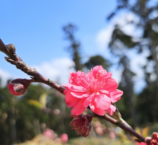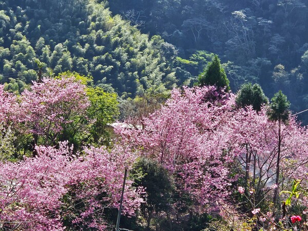 放眼望去,步道旁、山谷底、茶道階梯間,無處不是樹樹胭紅片片粉嫩。這何止是花開?分明是春天最後的一場豪賭,將所有的絢爛集結於此,拚卻性命般地綻放。每一片燦豔的花瓣,都像是春天裡旋飛起舞的花蝴蝶。