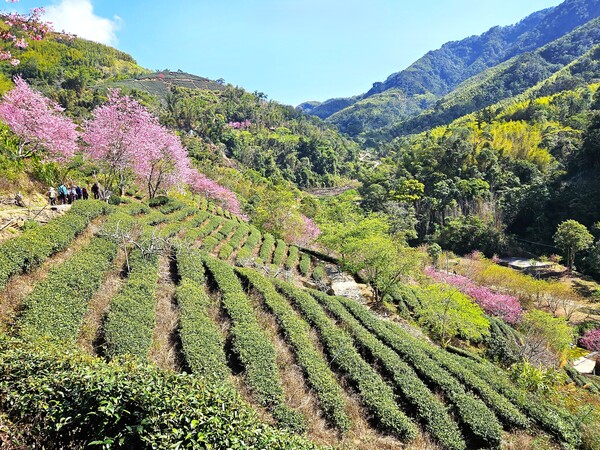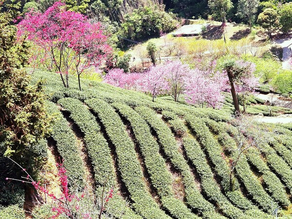 望著眼前的景致,心中不禁自問:是這抹粉紅烘托了這一片連綿的綠意,還是這沉穩的綠葉襯托了櫻花的嬌豔?低頭看向腳下的茶樹,它們守著山土,經年累月地扎根、吐嫩,那是屬於大地的定力;而仰頭望向那炸裂般的粉櫻,它們是春天的信使,用最燦爛的燃燒來慶賀生命的瞬時。