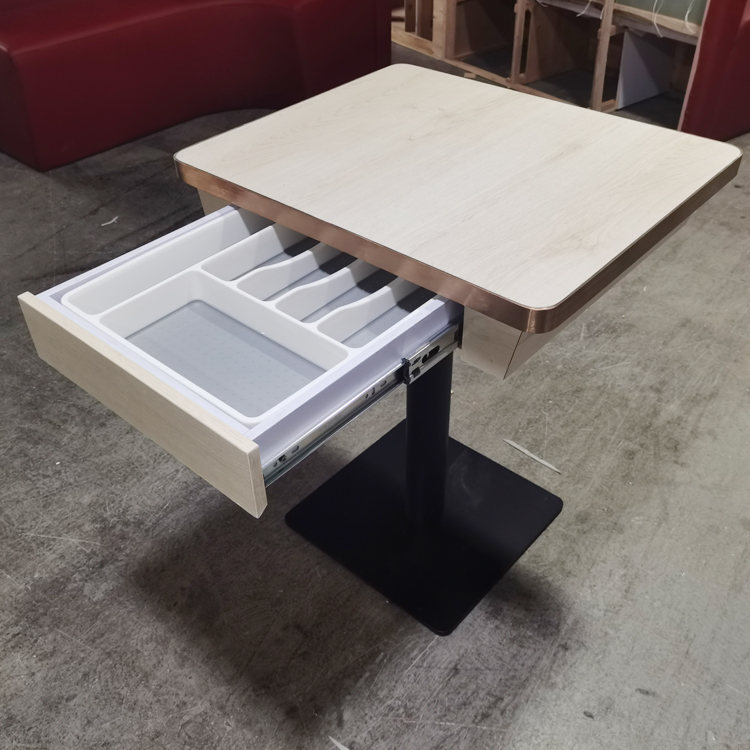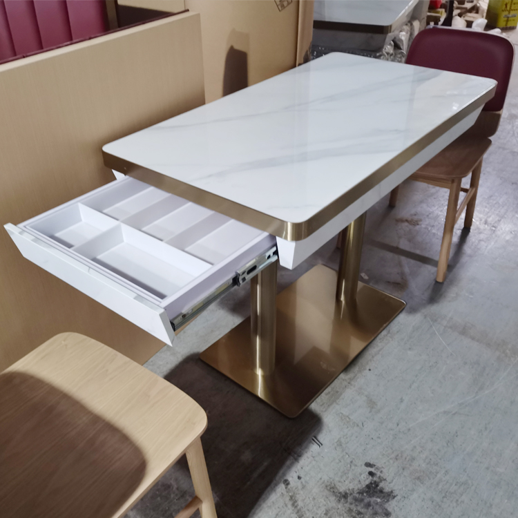 防火板抽屜餐桌訂製,雲石人造大理石餐檯訂做,港式餐廳餐桌製造廠家,不鏽鋼包邊膠板岩板餐枱訂做,深圳市眾美德傢具廠