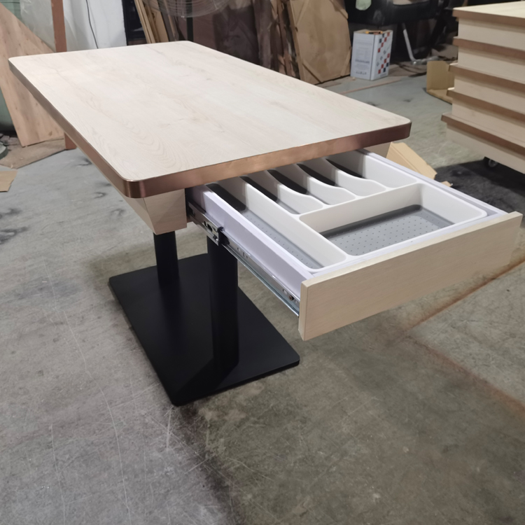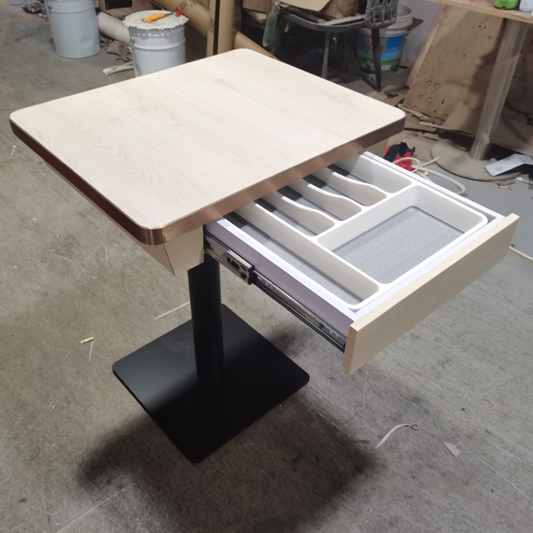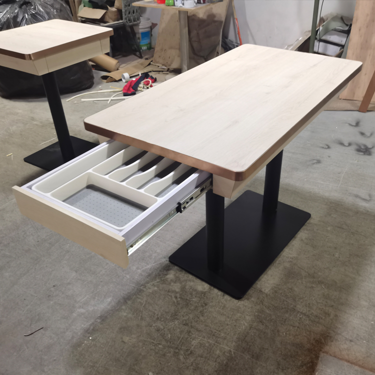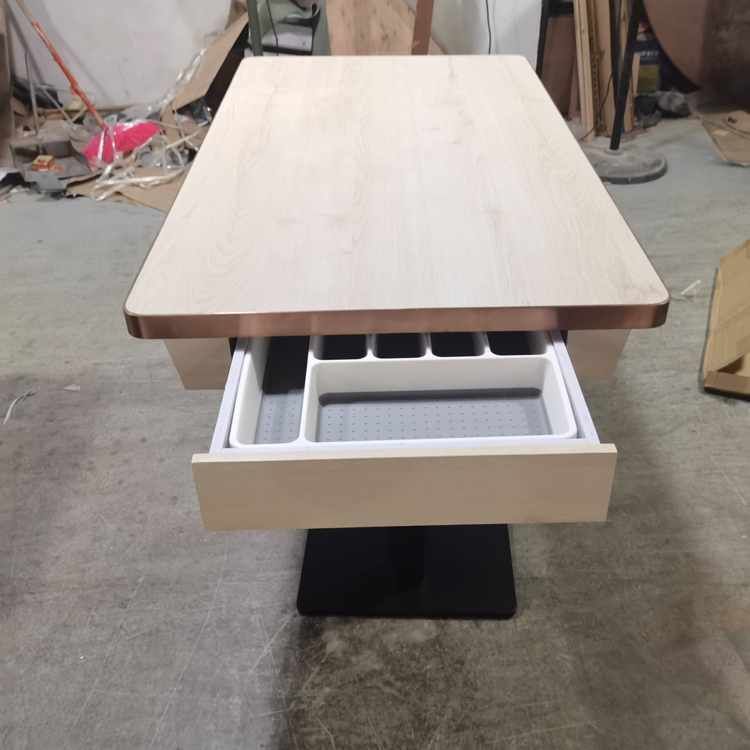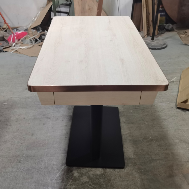 防火板抽屜餐枱訂製,不鏽鋼圍邊餐枱訂做,港式餐廳餐桌訂造,收納櫃儲物餐檯訂製廠家,眾美德餐廳家具桌子加工廠