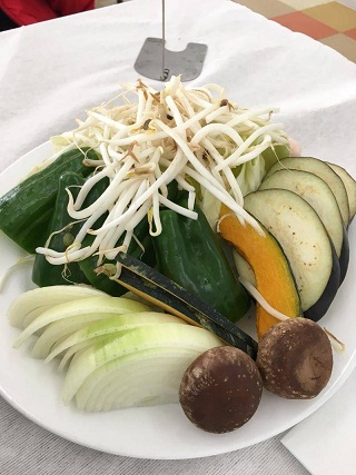 只是在烤盤上烤高麗菜、香菇這種立體的蔬菜有點難度就是了(笑~)。