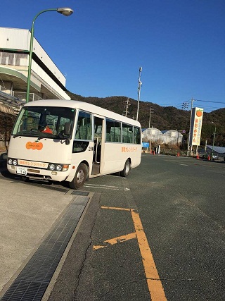 吃完了午餐,再次回到報到櫃台,櫃檯人員會幫忙安排接駁車到草莓園,下了電扶梯之後會看到一台小巴士整等候著我們。