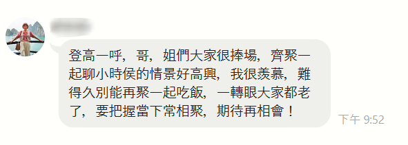 難得家族聚餐,往事盡在笑談中。