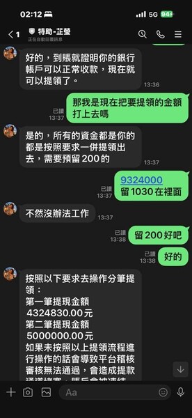 3、自稱「客服、老師、助理」的歹徒會提供 銀行帳號 給被害人入金投資,或以「參與抽股」、「系統中籤」等各種理由要求被害人補足入金。