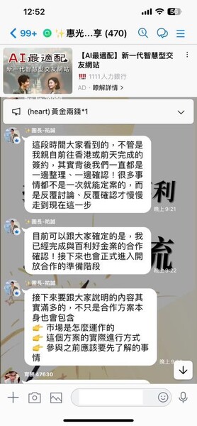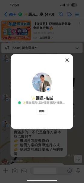 最近有加入一個分享優惠資訊的群組不過最近裡面好像在討論投資黃金好像都是盜用別人頭像跟合成的尤其是裡面的團長請大家不要被騙