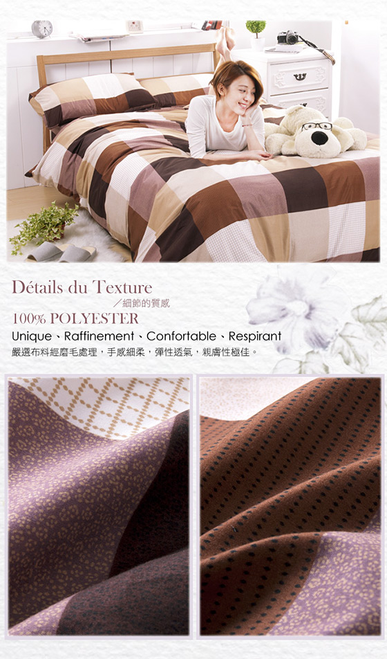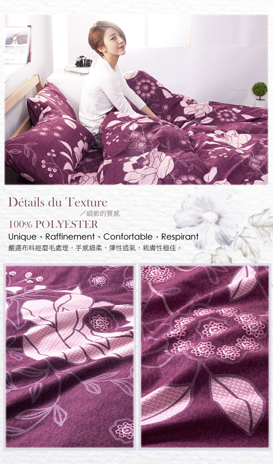 ●嚴選高質感寬幅天絲絨布料,專業裁切與車工,打造完美寢具
